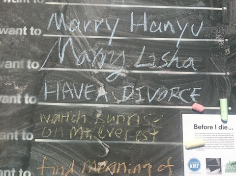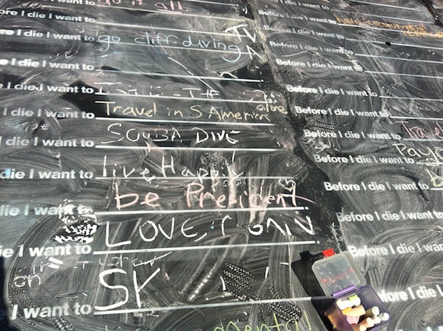 Though the Students of AMF and Postcrypt blackboards outside Butler will be there until April 29th, we decided to share with you some of our favorites from today. Today’s “Before I Die” awards go to…