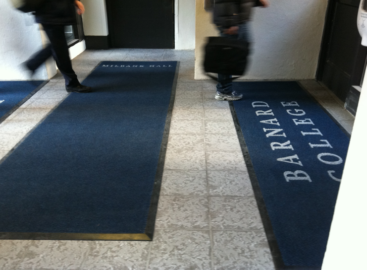Hold on to your hats, kids! Barnard’s got some swanky new carpets. The rugs say the names of the buildings on them (so you don’t get lost, I guess?). The downside? Sources say that some of the carpets are so plush that it’s making it hard to open the doors. Say it with me now: #firstworldproblems! In any case, behold Barnard’s new carpets!
