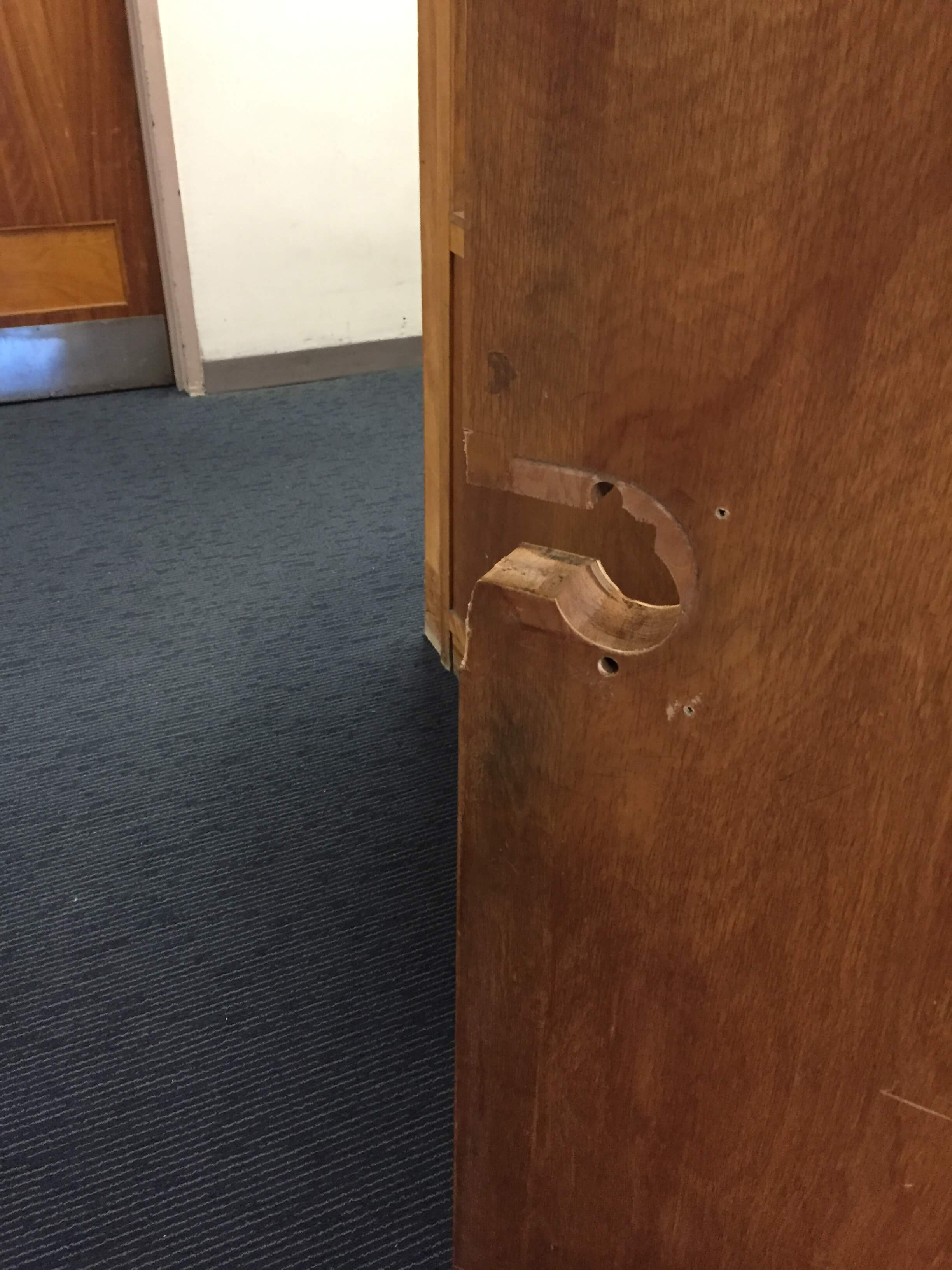 - There used to be a door handle here? Or maybe an actual door and not just a slab of wood?