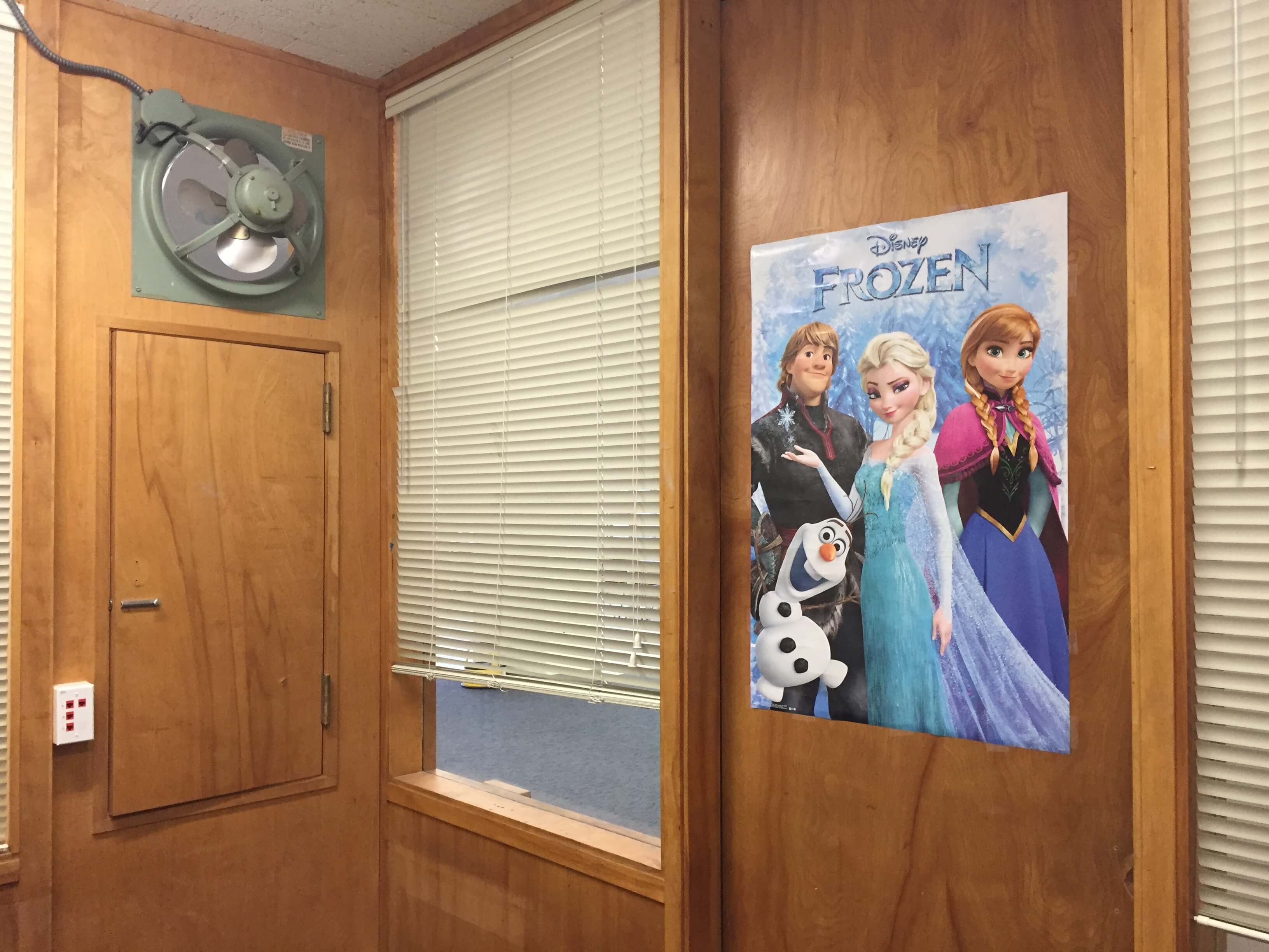 - An abandoned office with nothing left behind except a Frozen poster. Spooky.