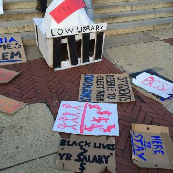 The demands include calls for the divestment from fossil fuel companies, the creation of a 24/7 rape crisis center, the elimination of the student contribution to tuition, the increase of student wages to $15/hr, the hiring of more faculty of color, the admittance of more low-income and black students, and the securing of affordable housing for those affected by the Manhattanville expansion.