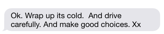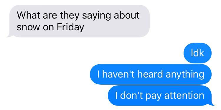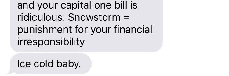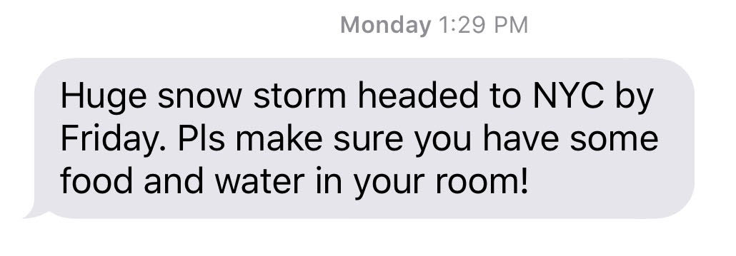 As we all know by now, winter storm Jonas is coming for us, and our relatives are concerned! Here are some texts we’ve received from well-meaning parents that have served only to increase our dread: