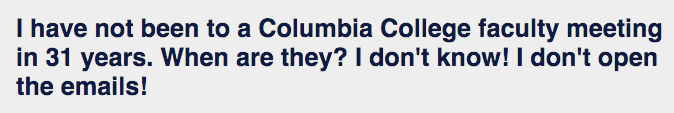 @LMAO It’s so funny that the one professor who hasn’t been to a Columbia College faculty meeting in ages doesn’t even know that the Columbia College faculty no longer exists as a result of its merger with the GSAS Faculty and GS Faculty. It happened in the 1990s LOL