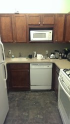 - Kitchen/Lounge: One (fairly large) kitchen per suite. Includes a full-sized fridge, dishwasher, stove, oven, and microwave, with ample cupboard space. Each suite has a large lounge, and some lounges even have a closet!