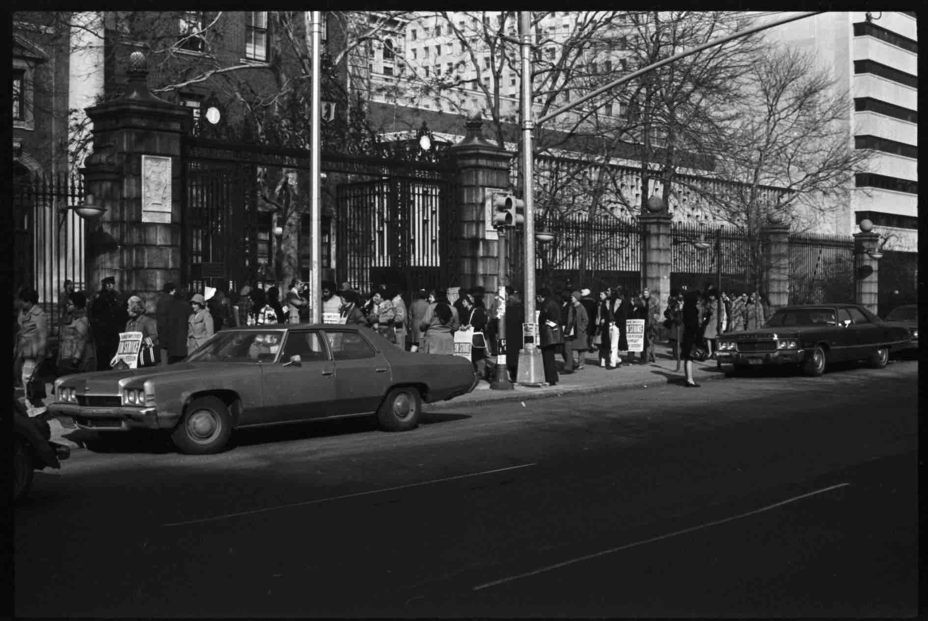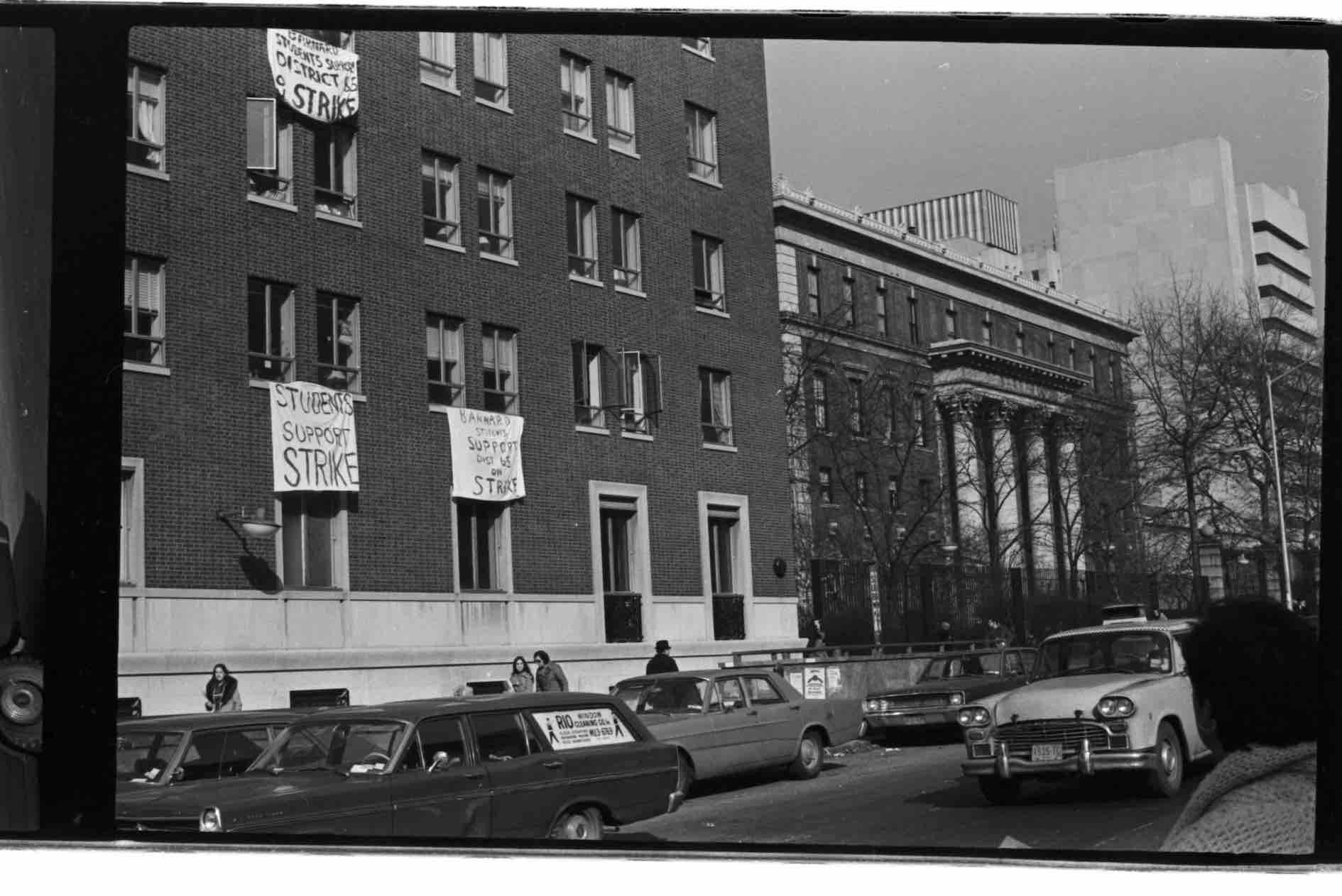 Students protesting outside Barnard in 1974