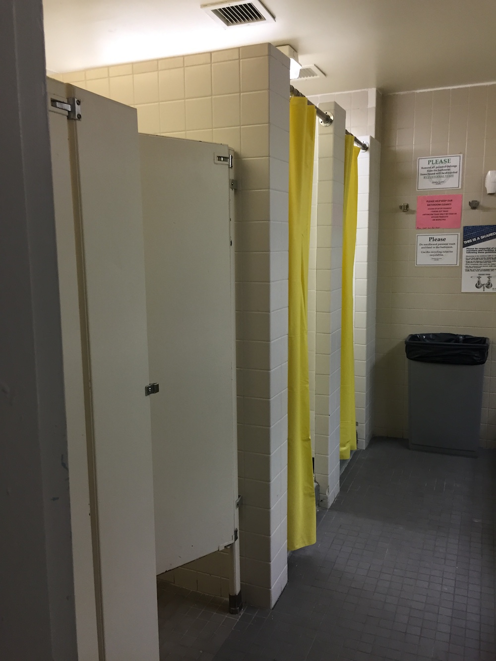 Bathrooms: Two bathrooms per floor, one on each side. The bathrooms aren’t great, but multiple showers, toilets, and sinks in each one, and facilities cleans them.
