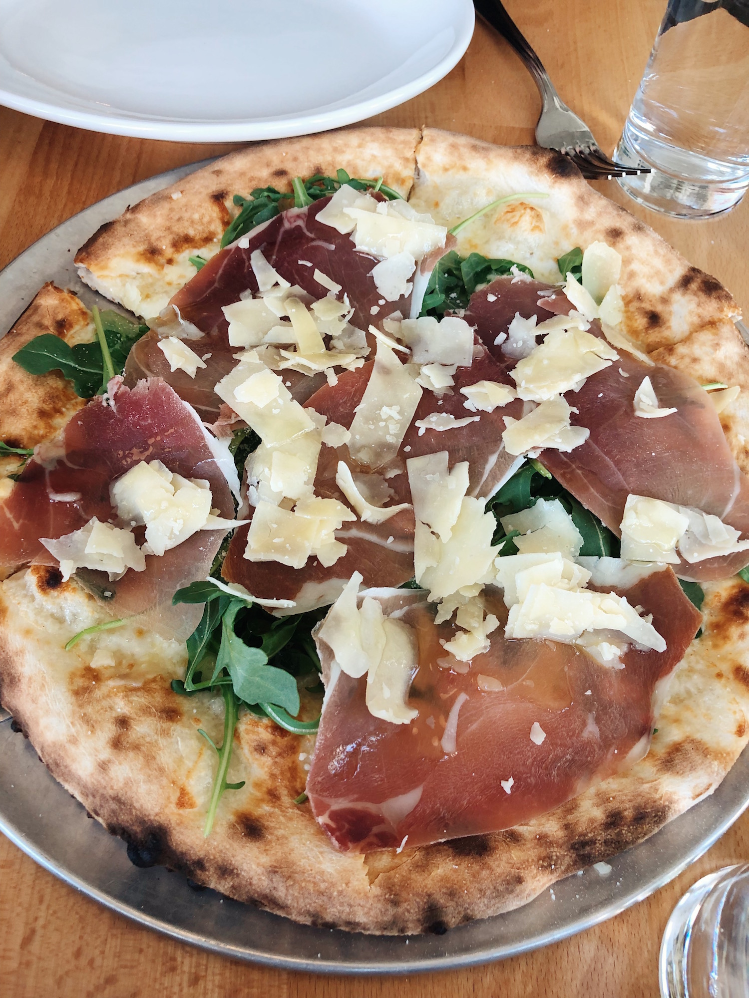The Parma pizza was recommended by our waiter. It’s a white pizza with prosciutto, arugula, parmiggiano, a fontina base, and truffle oil on top. I could smell the truffle oil immediately. I usually really don’t like white pizzas because they always end up really heavy, and the tomato always balances out the heavy cheese. However, this white pizza was done really well. What really stood out was the softness of the dough. The dough was stretchy and an appropriate thickness, and very mochi-like in texture. I really liked the fontina base and the pizza didn’t feel overwhelming despite all the cheese it had.