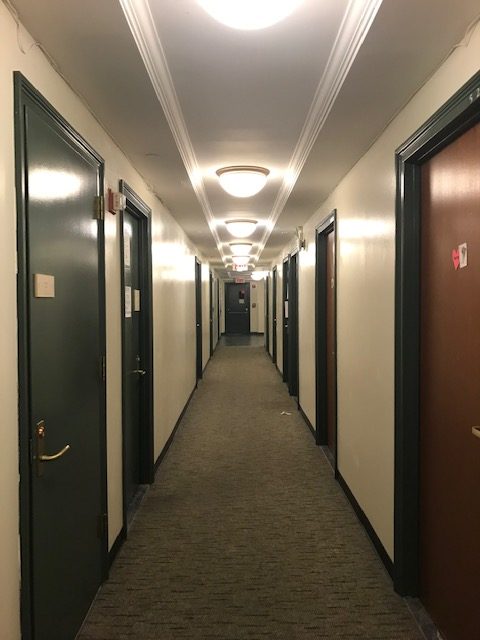 - Hardwood/Carpet: There’s hardwood in the rooms, carpet in the hallways.