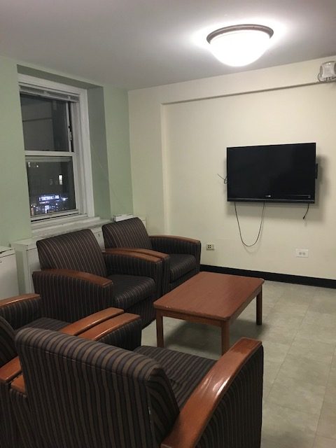- Lounge: There’s a building lounge on the first floor, as well as lounges on every floor with a TV and kitchen. The building lounge is large and great for studying, and the floor lounges are pretty spacious, with multiple armchairs and tables.