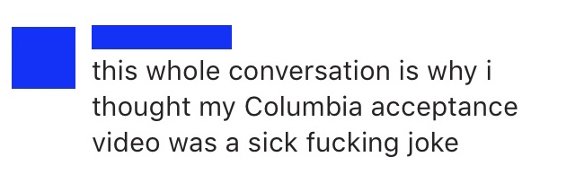 I remember barely a year ago being swept into the craziness of receiving my Columbia admissions letter. Part of that craziness involved me joining my class’s giant, 500-person group chat. Back in the day, in 2018, I thought to myself this is a weird fucking group chat. Yet, somehow, I think the incoming freshman class is even weirder.