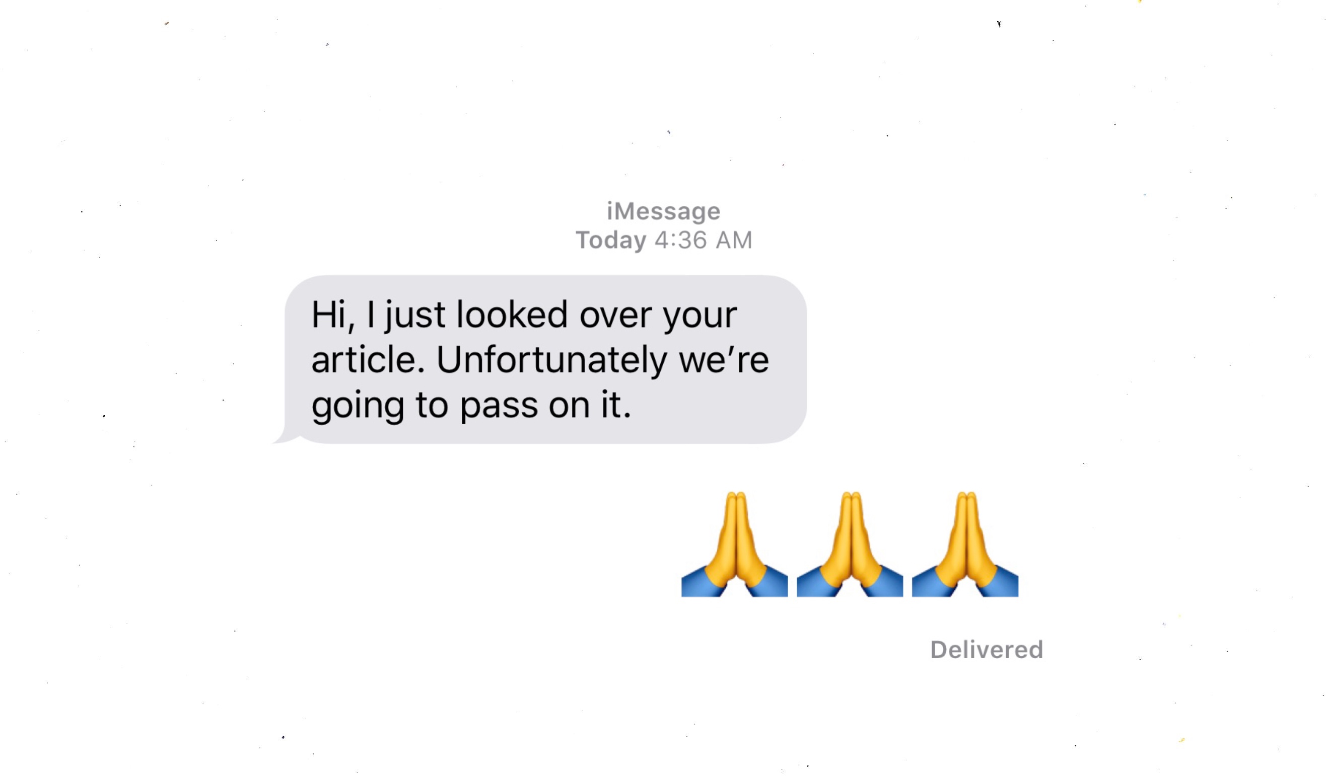 The advice is this: don’t send your pitch to any email addresses called opinion@magazine.com. On the off chance that these large professional magazines read your pitch— probably because of the inbox zero craze—a dozen articles with the same take will have already been published, at which point your work is basically plagiarism.