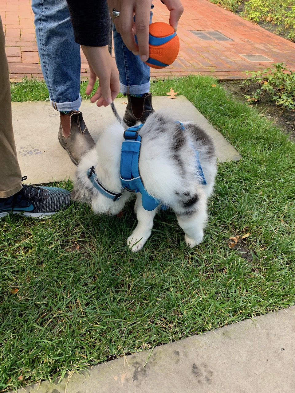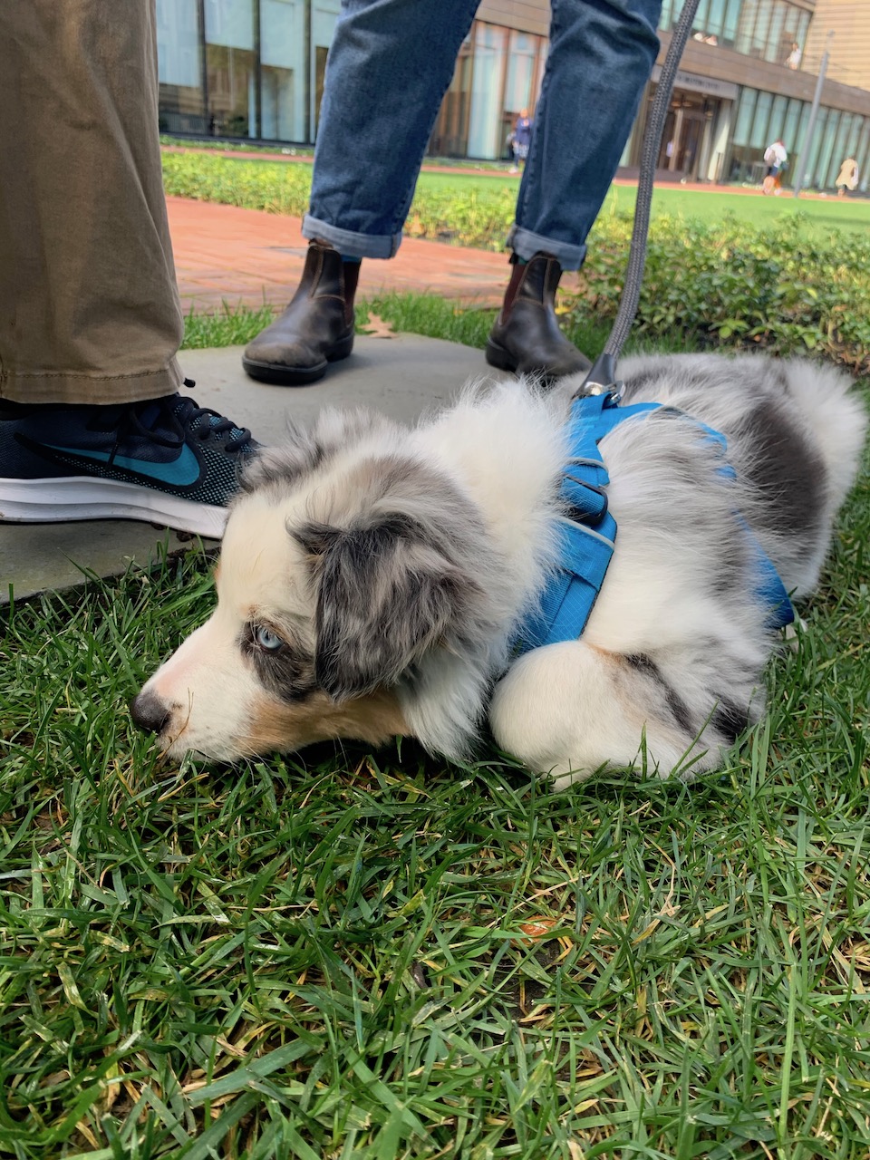 This week while I was trying my very best to study in Milstein I was distracted by the most precious puppy I had ever seen. After abandoning all of my work (and my green chair) I had the honor of meeting EC resident Koda, a three month old Australian Shepherd. Koda was having a great time running around on Futter Field and trying to eat as much grass as he possibly could. If you want to watch all of Koda’s adventures be sure to follow his instagram @koda_at_columbia