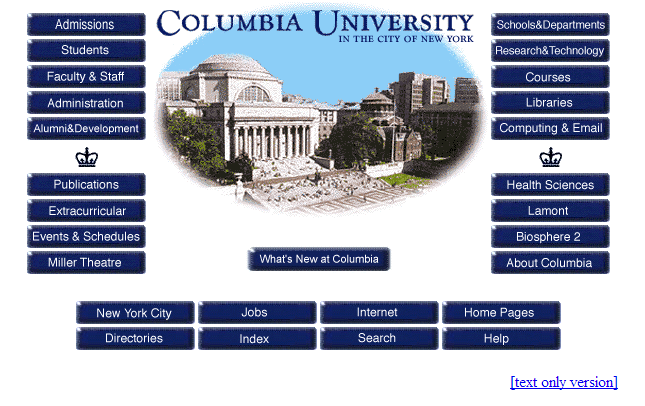 - Columbia’s first website, launched in December 1996. I was in my second year in SEAS, and we all used Netscape Navigator.: This one is for everyone who’s looking for the intersection between vaporwave-esque nostalgia and school pride.