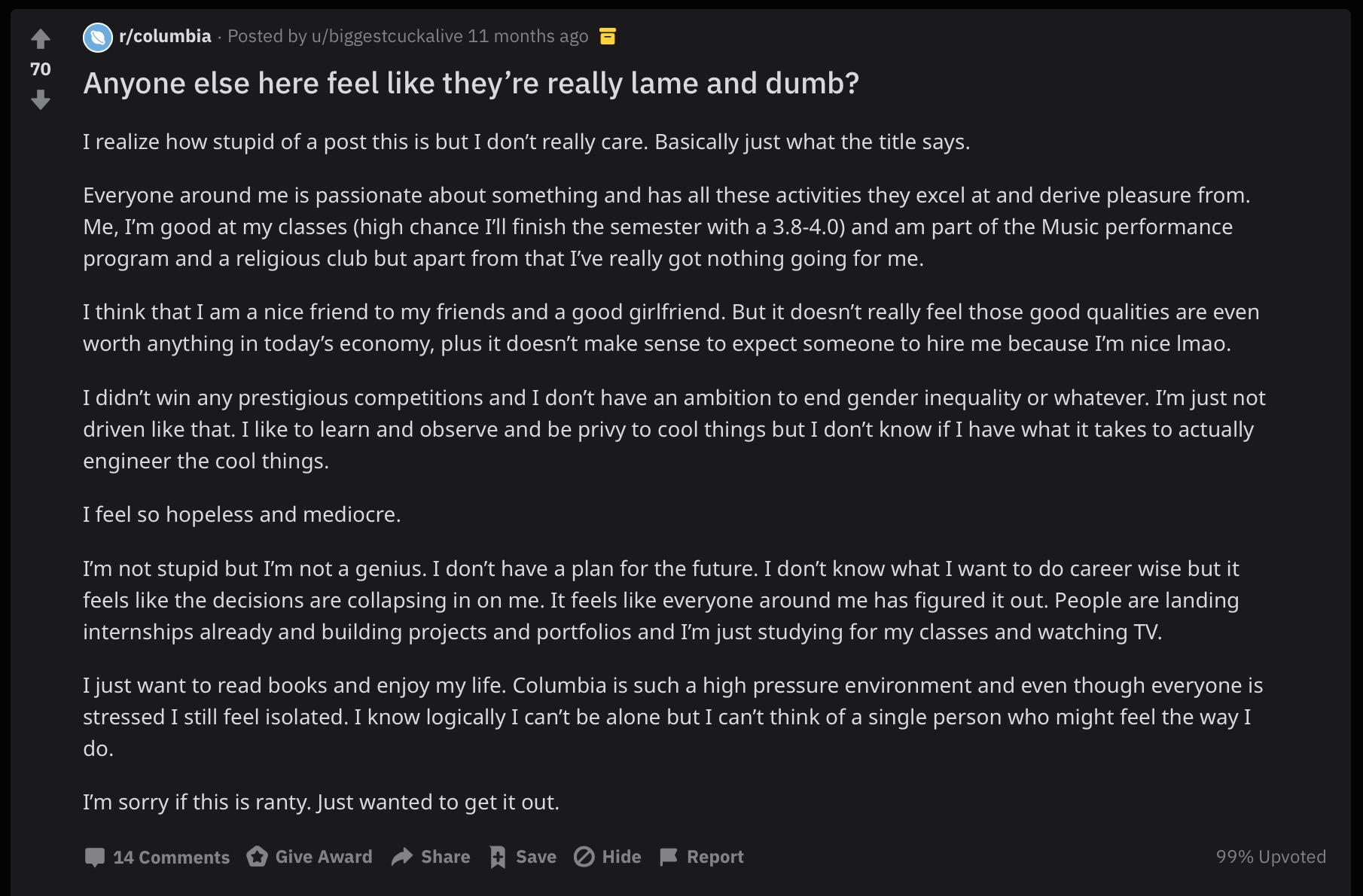 Today we’ll take you through through the best, worst, and most on-brand posts from the r/Columbia subreddit.
