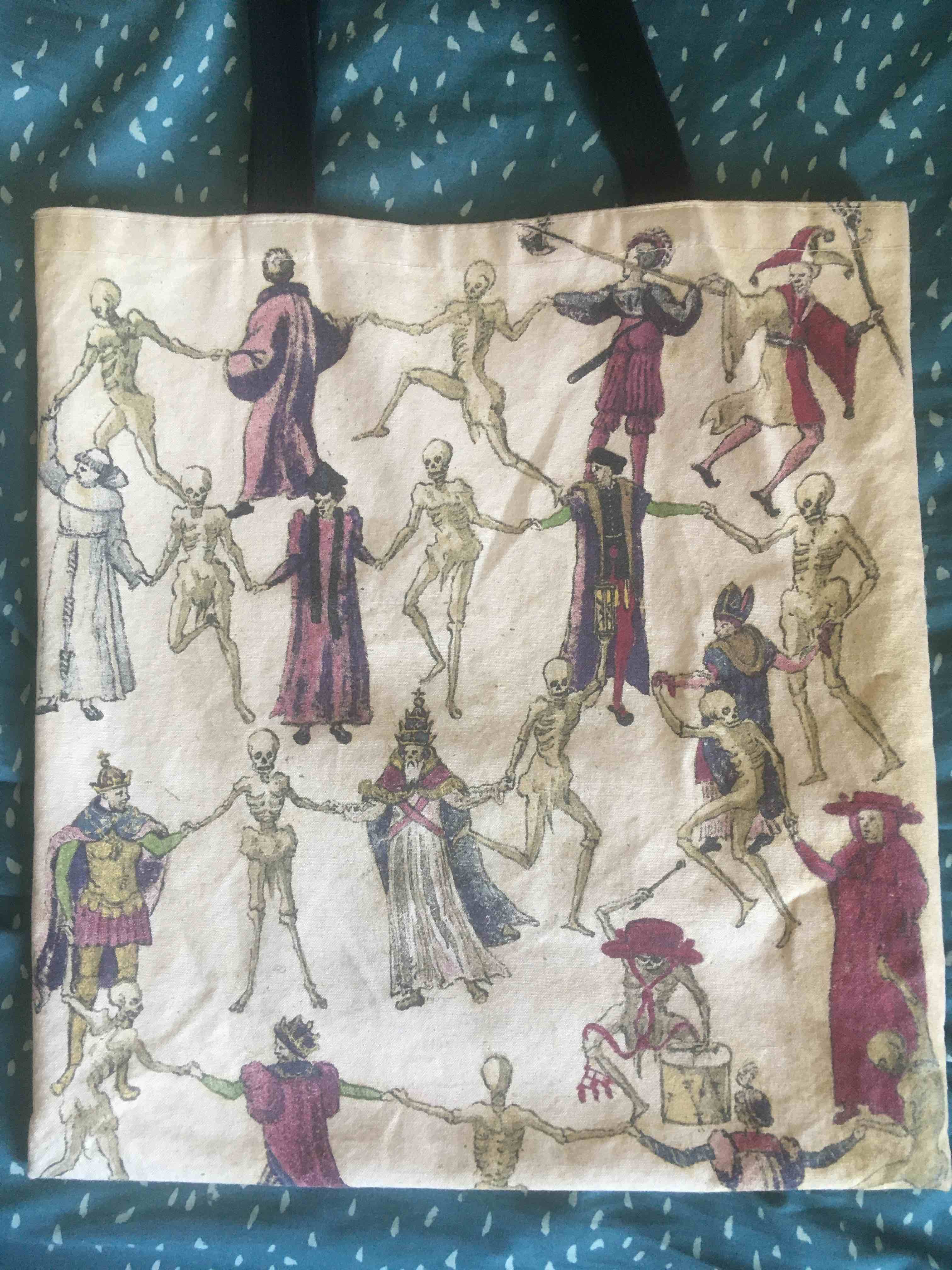 - Rep Medieval art with a dancing skeleton bag!
