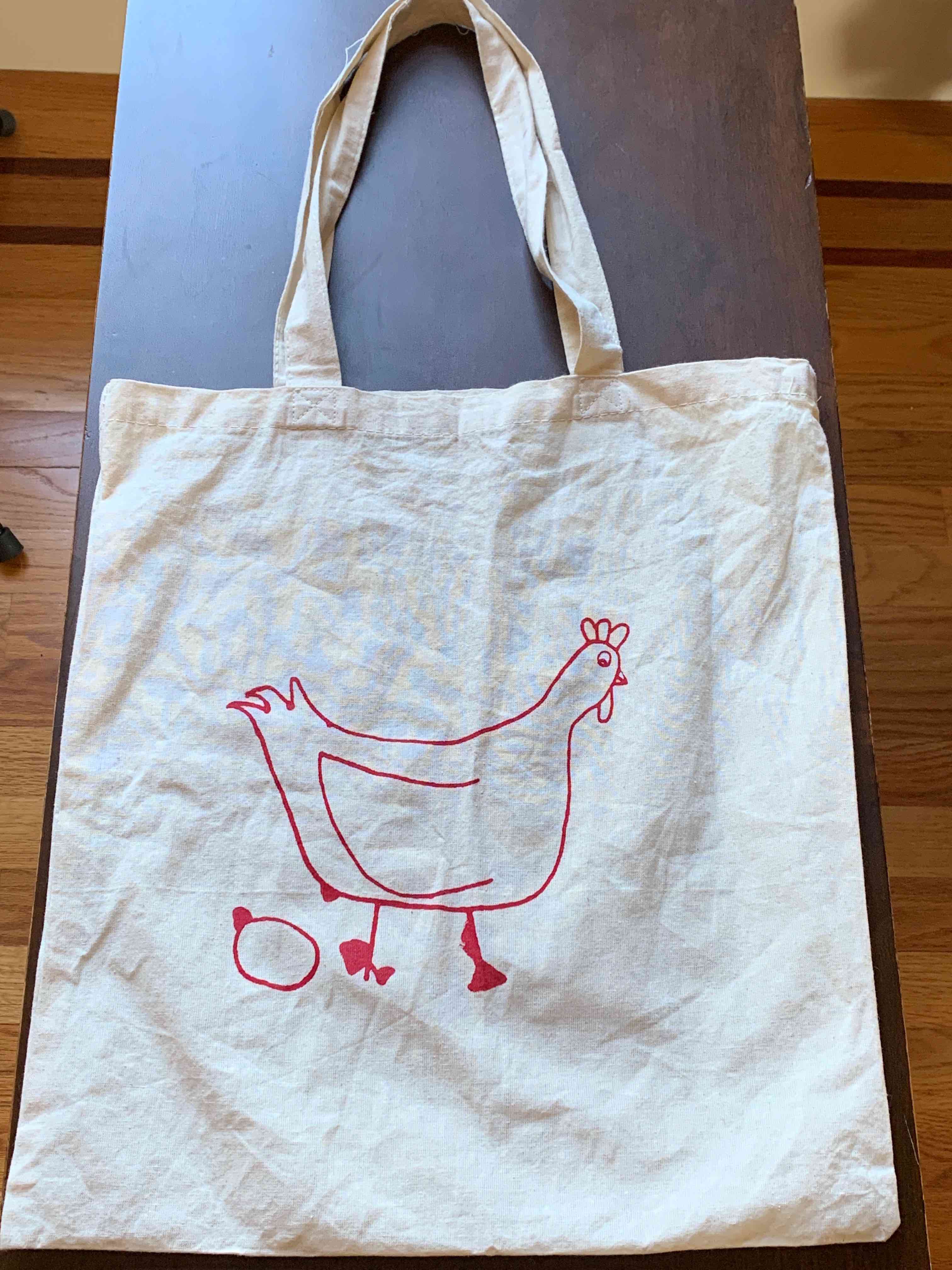 - Don’t chicken out! Express yourself with a screen-printed tote bag!
