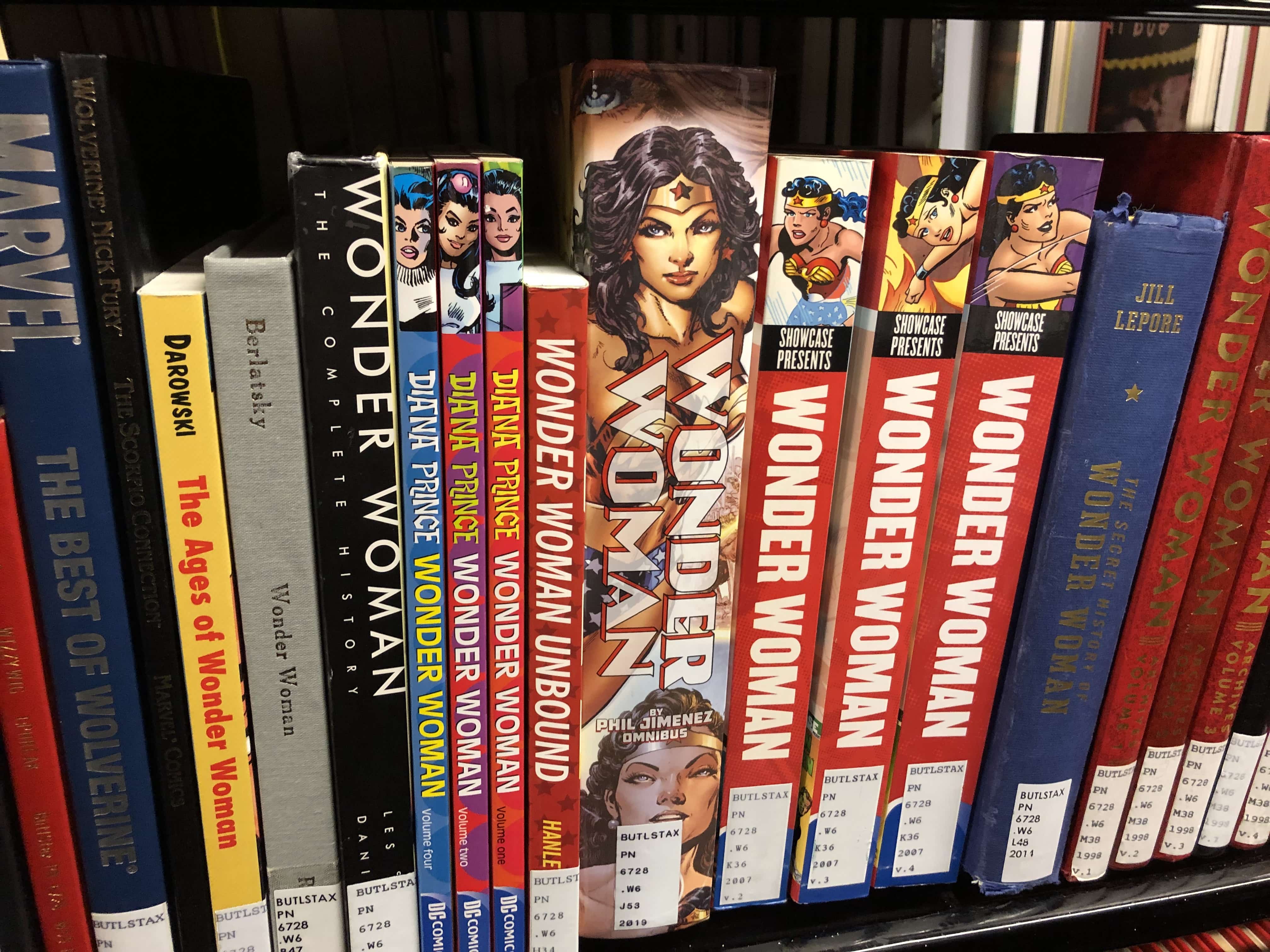 Aside from the collection’s origin, I was also interested in how it was organized and why it happened to be sandwiched between rows with books of completely different genres and time periods. Green told me, while all books acquired in the past 50 or 60 years are classified according to the Library of Congress Call-Number Classification System, rules regarding comics don’t always follow a discernible logic. A vast majority of the graphic novels collection has been shelved on floor ten, under the umbrella heading of Literature, with a subheading of Comic books, strips, etc., but a large number also exist on floor nine, under the main heading of Art. In addition, certain books are shelved according to their topic—for example, Maus is in the World War II history section.