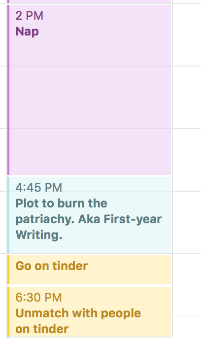 Ever wonder what the day-to-day agenda for a first-year student looks like? Think no more. One Bwogger has finally uncovered the real answer that no college admissions session could ever reveal to you. Below is a detailed timeline of the usual activities from 9 am to midnight.