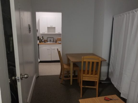 Hardwood/Carpet: Linoleum in the kitchens, carpet in the rest of the suite. (Unless you’re in one of the rare renovated suites, which have hardwood floors.) Upper floors have nicer carpets.