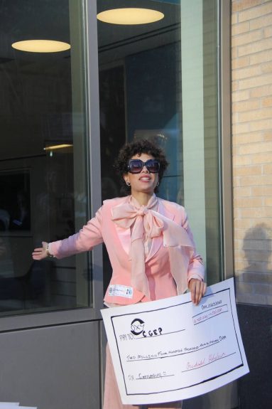 On Monday afternoon, members of the club dressed in professional clothing and presented self-created “faux checks” to other members, imitating fossil fuel companies donating money to CGEP. Members wore nametags showing them to be executives from various executives from prominent oil and gas companies, including Exxon, Occidental Petroleum, Tellurian, Expand Energy Corporation, and ONEOK. The checks ranged from $200 thousand to $3 billion, and were made out for purposes such as “Disinformation,” “Ecocide,” “Greenwashing,” and “Mass Extinction.”