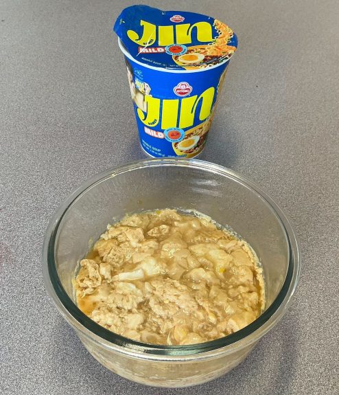 One cup noodle of any brand (I, personally, used Jin ramen. But I also highly recommend Shin ramen as well if you like it with an extra kick.)