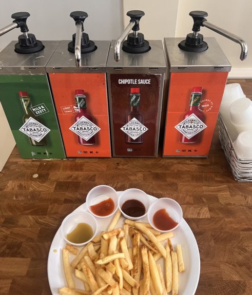 One thing about me is that I love capsaicin and condiments. Last semester, I 2Girls1Snacked the sauce bar at JJ’s Place, but a lot of the sauces there were severely lacking in spice. Let’s hope Hewitt Dining’s new Tabasco bar redeems that… (spoiler: it kinda did!)