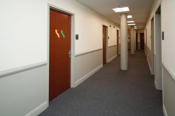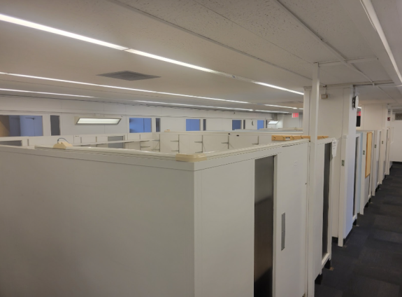 On the 3rd floor, the Computer Science Learning Center (Room 301) is almost finished, and paper taped to the door indicates that it will open sometime in February. According to the building directory, Room 301 used to contain Professor Donald Hood’s Visual Science Lab, and before Hood’s lab, it was composed of various offices.