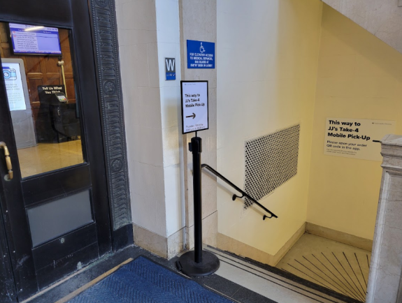 Some changes have taken place in JJ’s Place as well. The other downward staircase in the entrance has been reopened as the pickup spot for mobile orders.