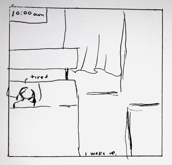 Hourly Comic Day, usually February 8, is a day where people make a comic for every hour they are awake. As you may very well realize, today is not February 8th. And I may not have done a comic for every hour I was awake. That being said, here are the comics I made on February 14 for a belated (bwelated, if you will) hourly comic day.