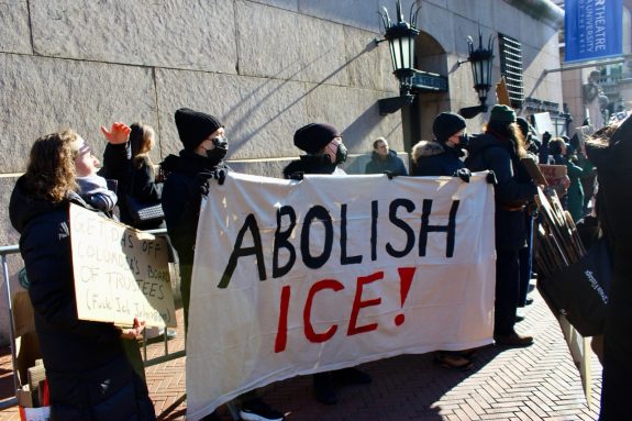 On Thursday, February 5, at approximately 2 pm, students protested at the 116th and Broadway gates against ICE on campus and in Morningside Heights. The protest demanded the University name itself a sanctuary campus, a status it held from 2017 to early March of 2025. The protest was organized by Sunrise Columbia, a student environmental activist group that has previously demonstrated against fossil fuel research funding, Columbia’s gate closures, and Trump administration regulations affecting universities. NYPD officers were already present and had partially barricaded portions of the sidewalk in advance.