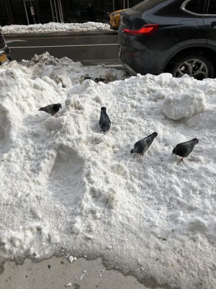 Look at these pigeons enjoying the snow! (Not slush, unfortunately)