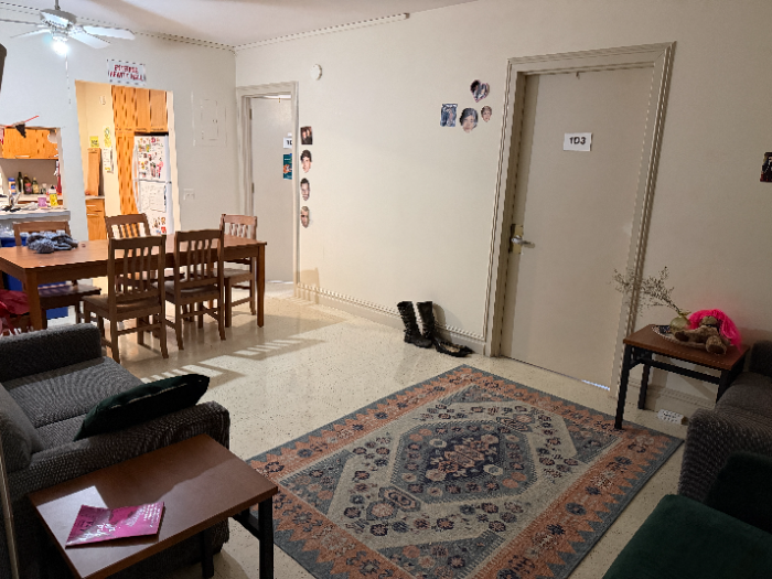 - Bonus: Some rooms have bookshelves, and some suites have an extra closed-off common area! Also, some of the doubles have a dividing wall (see pics below).