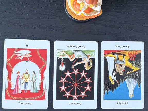 Princess Daisy: The Lovers, Ten of Pentacles reversed, Ten of Cups reversed